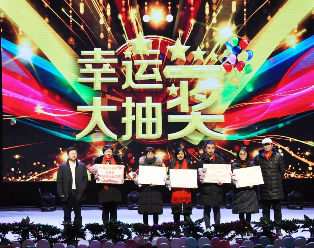 年会里除了精彩纷呈的节目,当然更少不了幸运大抽奖和微信抢红包!便携台灯、按摩仪、年货大礼包、微波炉、感恩父母旅游大奖接连诞生,欢呼声连连。