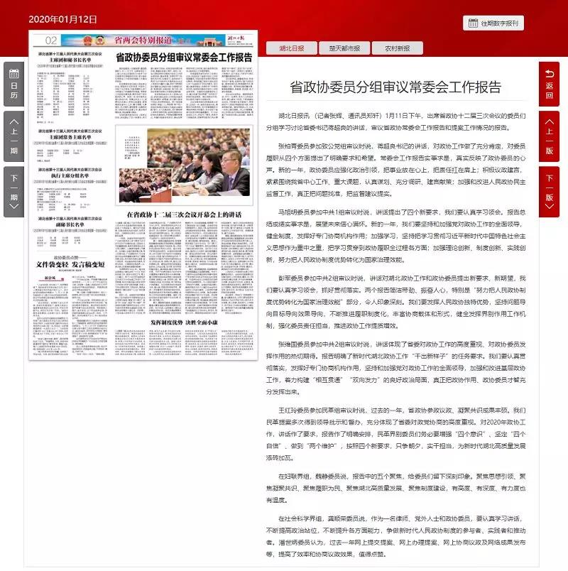 2020年1月11日《湖北日报》: