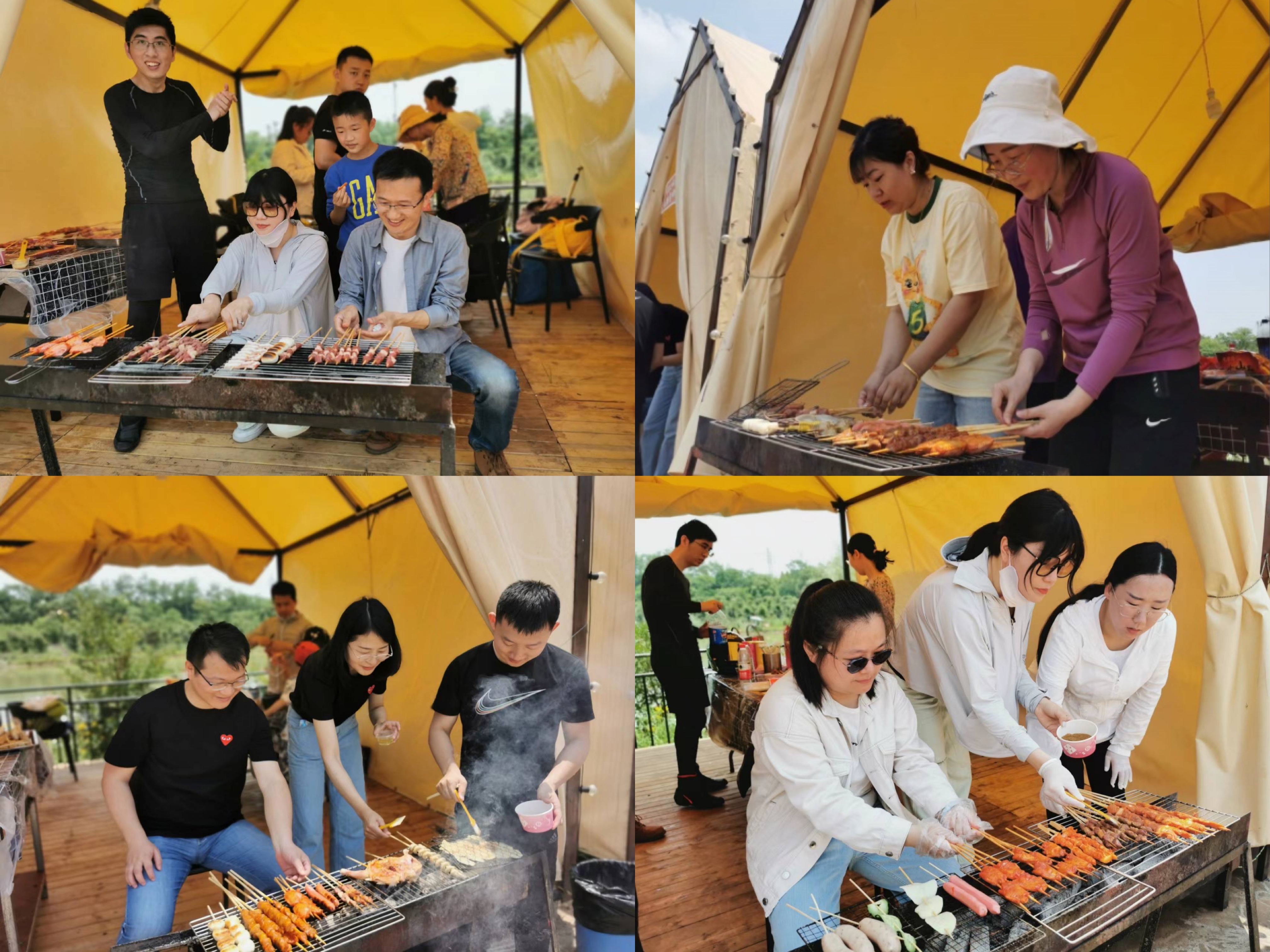 半天行程过后,在大家充满快乐和期盼的眼神中,烧烤活动正式开始。永业行员工中藏龙卧虎,涌现出一批“烧烤小能手”,串食材、涮调料、摆桌子,一时间热火朝天,大家忙得不亦乐乎却有条不紊。大小朋友们围坐在一起,吃着烤串,闲话家常,开怀大笑,各种美味香气萦绕在空气中,场面热闹而欢快!
