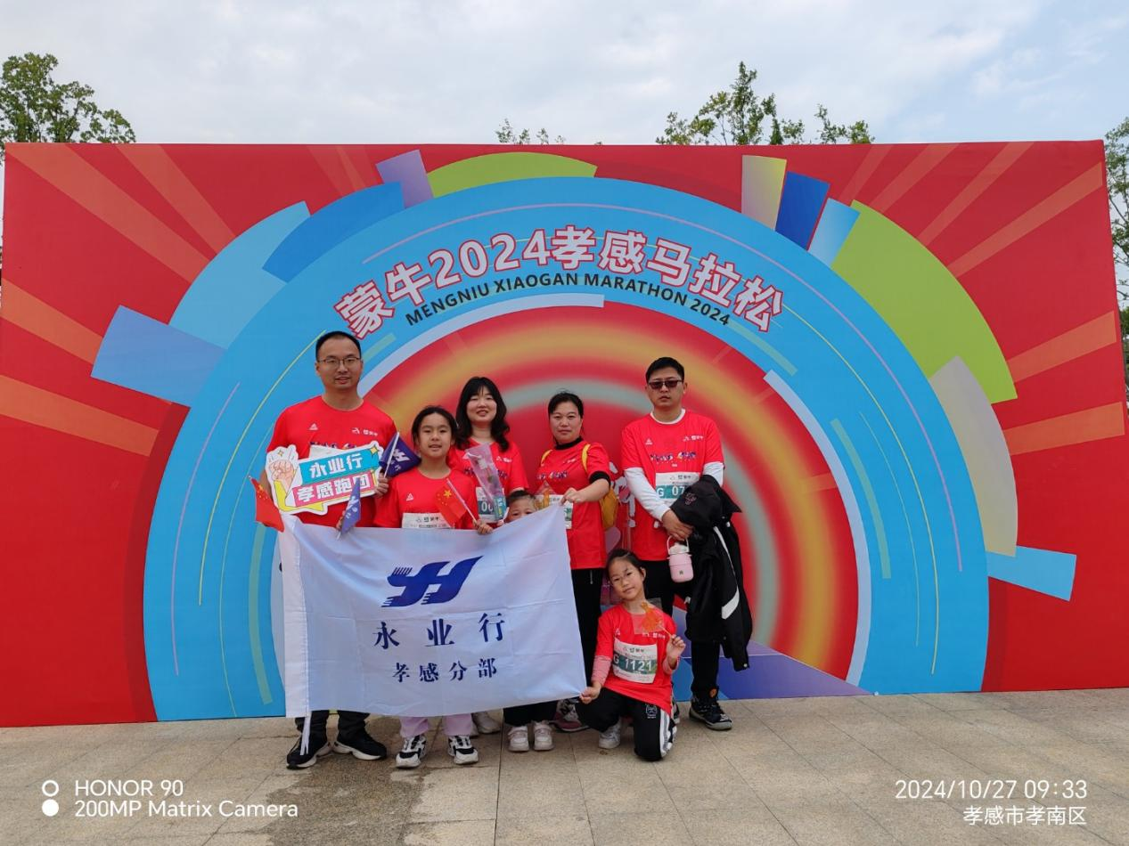 2024年10月27日上午7时30分,蒙牛2024年孝感马拉松在孝感市文化中心激情开跑,孝感分部总经理梁小虎带领分部中签员工及家属参加活动。