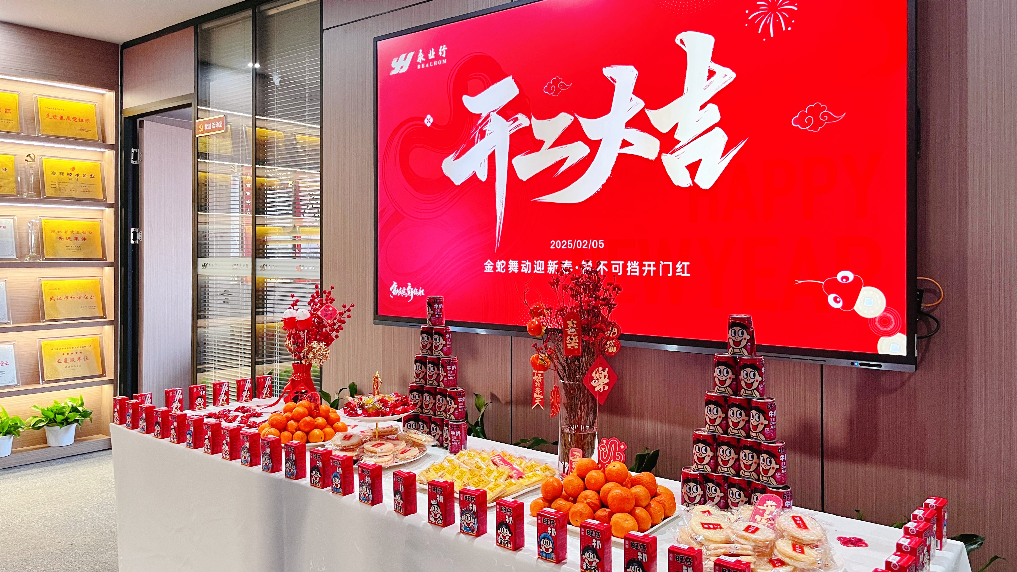 金蛇舞动迎新春,锐不可挡开门红。2月5日,农历正月初八,永业行举办2025年新春团拜会暨“开门红”系列活动。党委书记、董事长潘世炳等高管与1200名员工通过线上线下相结合的方式齐聚一堂,互道新年祝福、派发开工红包,畅谈新春见闻、展望美好愿景,在欢声笑语中开启新年新征程。