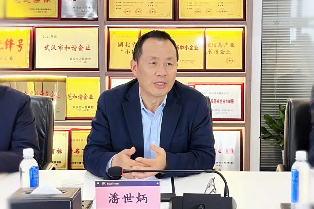 潘世炳对杨玉华一行表示欢迎,感谢农工党湖北省委会对永业行的关心与支持,并就农工党湖北永业行支部筹建情况进行了汇报。他表示,永业行将严格遵循农工党组织章程,健全组织管理体系,配强支部工作力量,为党派履职提供坚实保障;搭建履职平台,推动党员立足专业领域建言资政;建立协同机制,通过课题调研、资源互通实现企业发展与党派建设同频共振,持续为地方经济社会发展和行业进步注入新动能。