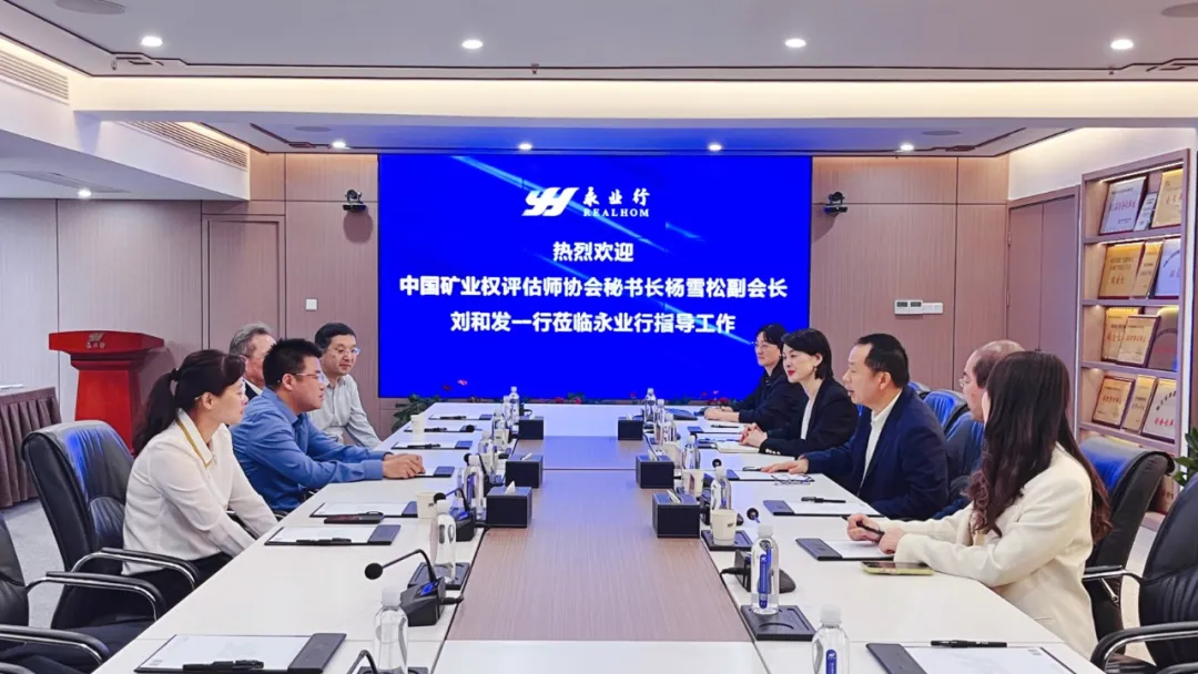 2025年4月22日,中国矿业权评估师协会秘书长杨雪松一行莅临永业行调研指导工作。中国矿业权评估师协会副会长刘和发、矿业权评估专业委员会委员柳海华、中国地质大学(武汉)经济管理学院教授王来峰等参加调研。永业行董事长潘世炳、常务副总裁吴学锋、联席总裁王琴热情接待并参与座谈交流。