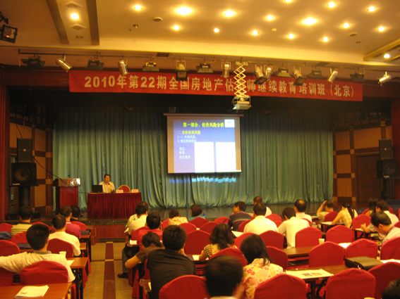7月4日,应中国房地产估价师与房地产经纪人学会邀请,总裁潘世炳参加了在北京主办的房地产估价师继续教育培训班,给来自北京和全国多个省市区的300多名房地产估价师讲授了房地产估价风险有关内容。